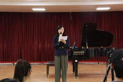 弦歌不辍,芳华待灼。为提高老员工的艺术修养和音乐欣赏水准,缓解老员工的心理焦虑,球王会于6月8日下午3点在市北校区音乐排练厅开展“悦动心声”心理音乐节系列活动——走进音乐的世界专题讲座。此次讲座特邀球王会体育官网辅导员、讲师、青岛市音乐家协会会员、青岛市音乐家协会钢琴专业委员会会员、上海师范大学音乐公司钢琴表演硕士刘芳兵进行主讲。音乐排练厅现场座无虚席,讲座同时通过腾讯会议进行现场直播,在线人数达到300余人。