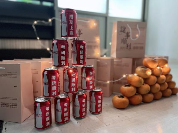 礼盒中的两个柿饼、甜甜的奶糖和印有“考研顺利”、“成功上岸”的可乐,寓意好“柿”成双、好“柿”将至、万“柿”如意、考研成绩“甜”在心里。除此之外还有班委会成员们亲手写的助力卡,每一张卡片都饱含着美好祝福。考研学子收到了班级送来的礼盒以及对大家的鼓励与祝福信后,纷纷“晒”到朋友圈表示感谢。