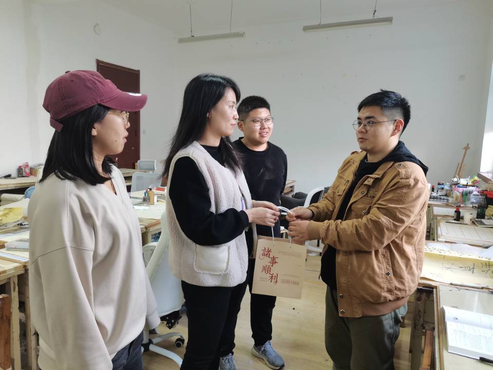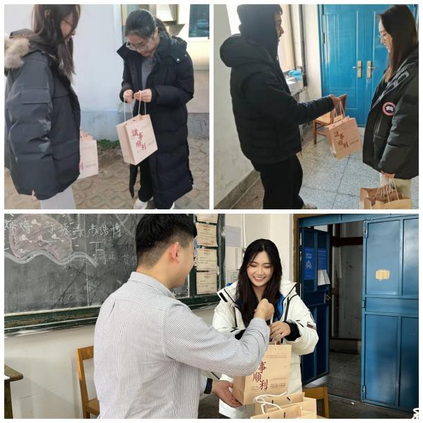 秋送凉风金万谷,冬飞寒雪题名时。2022年全国硕士研究生考试已经进入倒计时,考研学子们正朝着他们的梦想做着最后的冲刺。为缓解备考压力,增强考研信心,12月21日,下午球王会公司学工办主任、分团委书记张恬,就业辅导员舒文、2018级辅导员李钦和环设183班班委,走进自习室、图书馆以及员工宿舍,积极开展考研助力送温暖活动,为考研同学送去冬日的温暖祝福。