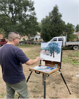 写生是贴近自然美、感受生活美的艺术实践课。为期两周的淄博写生旨在引导员工充分感知山东省情,提高审美水平,增强对自然风景的观察力和感知力。实习期间,指导老师带领员工在淄博博山各具特色的村庄进行实地采风,体验当地文化。青年学子通过认真听取当地村民的热心讲解,充分发扬自身学科优势,以笔为媒,用心描绘壮丽山河、田园风貌,生动展现当地文化底蕴,筑牢绿色价值观。