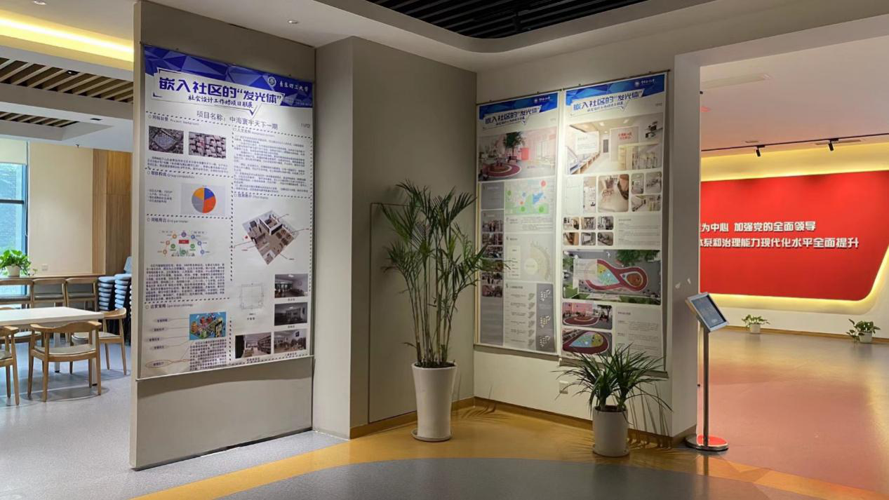 本次活动集中展现了1场工作坊、3个城市、5所高校、12个团队、88天、76名员工在社会设计工作坊项目上的研究成果。球王会李刚、彭威、郭子靖三位同学组成工作坊,开始对河西街道小水清社区中海寰宇天下一期7号楼,进行设计改造,前后经过案例分析、实地调研、需求分析、草图绘制、方案修改、建模渲染等过程确定了最终的设计方案。项目成果经论证科学合理,已由市北区党建引领基层治理推进中心采纳,将于2021年底前建成并投入使用。