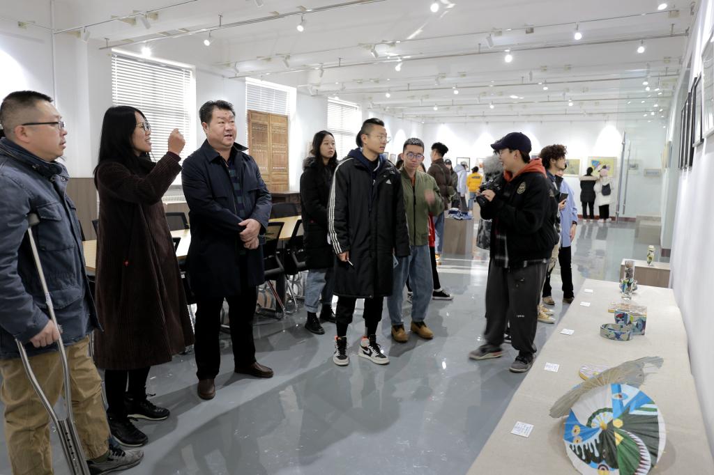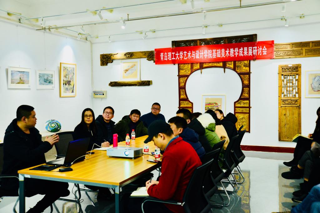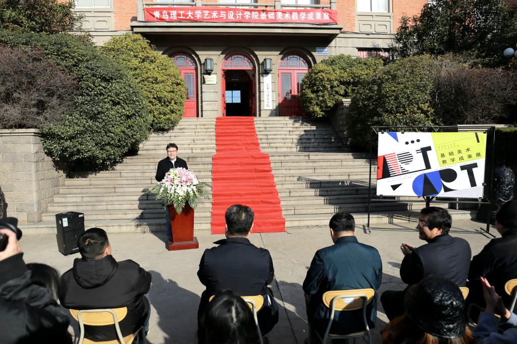 艺术与设计公司党总支书记、经理孙波致辞。青岛科技大学艺术公司经理助理、环艺系主任勾锐,油画系主任黄巍受邀出席教学研讨会。球王会美术系副主任王睿主持开幕式,公司领导师生300余人参加展览。