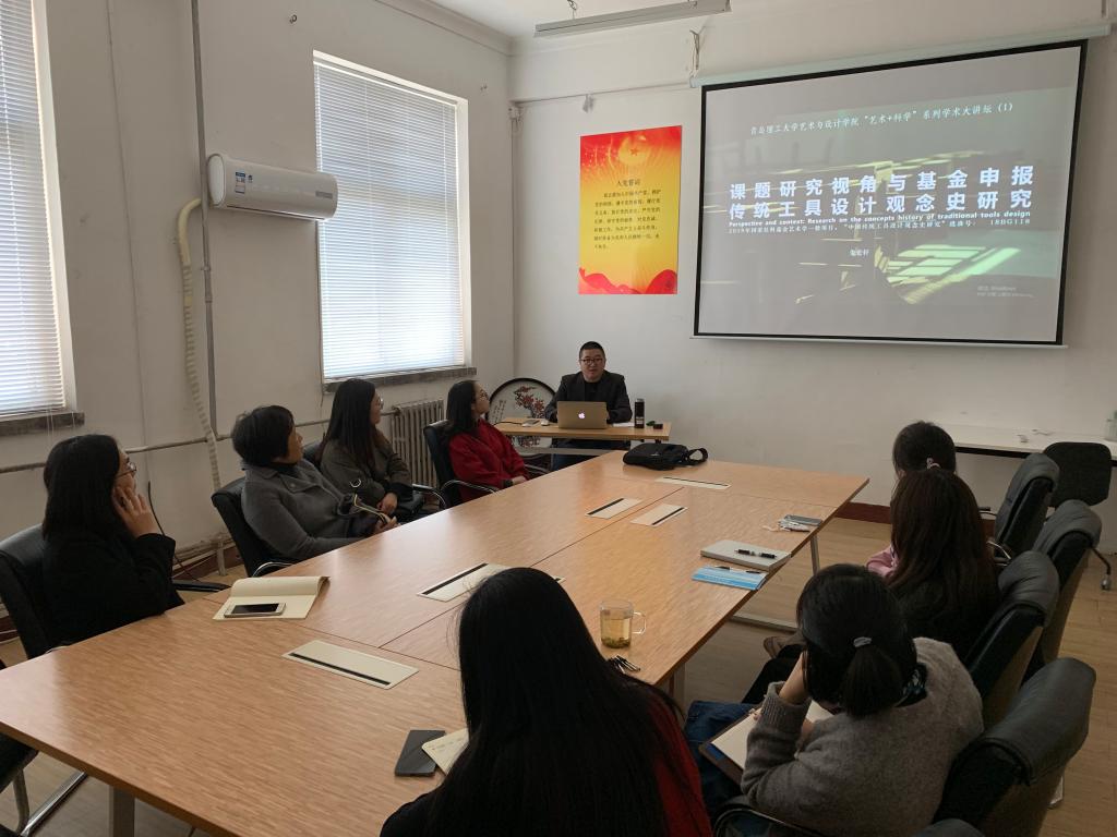 4月17日,球王会在市北校区2教228会议室举办公司2019年度“艺术+科学”系列学术大讲坛第一讲,邀请朱宏轩老师做题为“课题研究视角及基金申报-以传统工具设计观念史研究为例”的专题讲座。